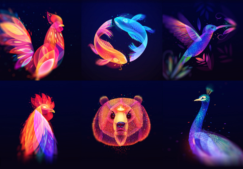 此外,不同颜色或图形的透明设置也可以创造出彩色玻璃纹理的效果。这就是为什么设计师们将这种方法广泛应用于APP的logo设计了。