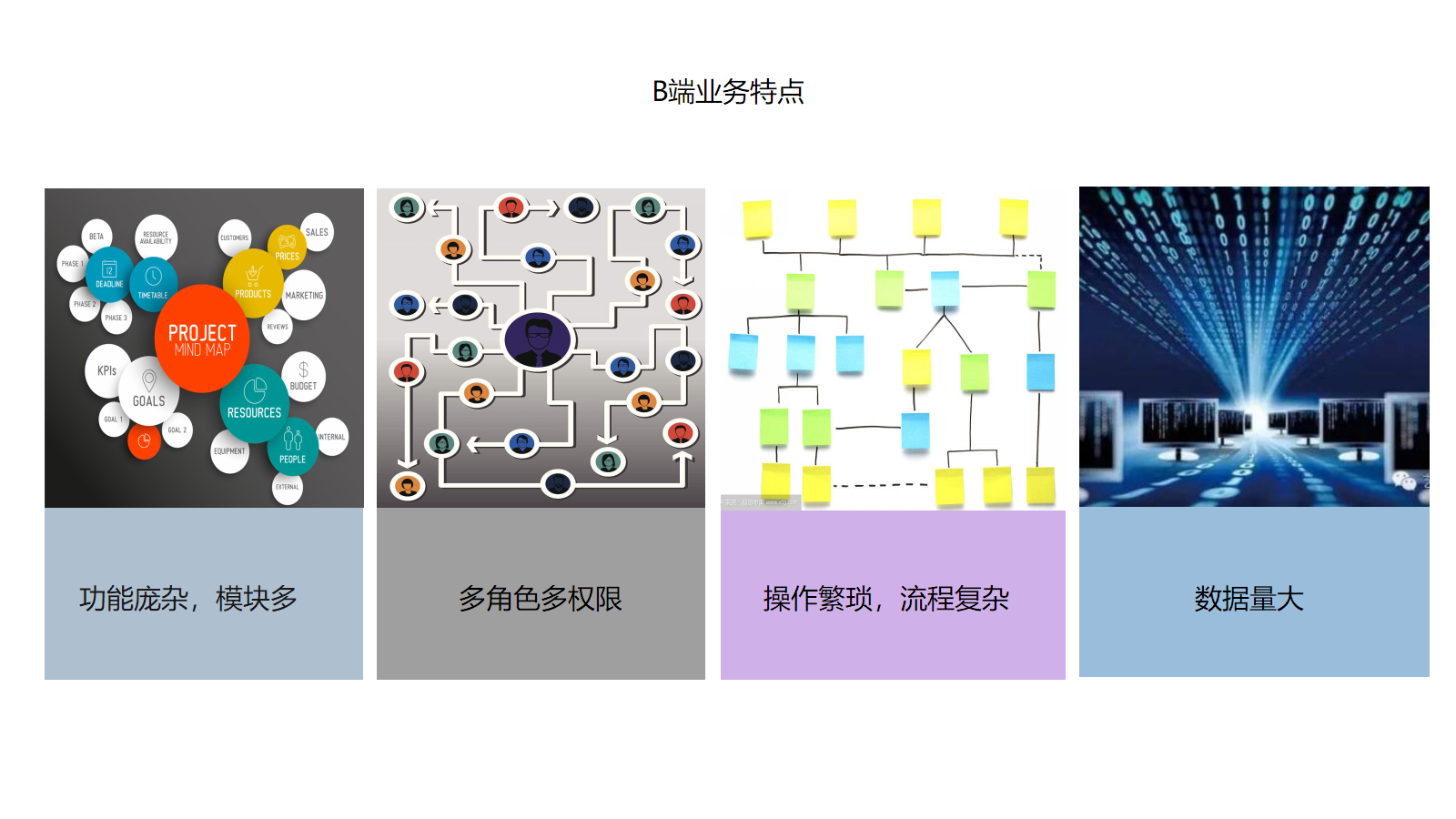 前面已经提到过,B端产品里包含各式各样的表单,通常数据量非常大,结合企业的实际生产情况,为了满足不同角色员工的多种需求,覆盖到各种业务场景,B端产品通常是一个集合了各个功能模块的综合体,不同职级的角色有着不同的权限。因企业规章制度的限制,许多必不可少的流程导致用户的操作比较复杂,具有一定的专业性。