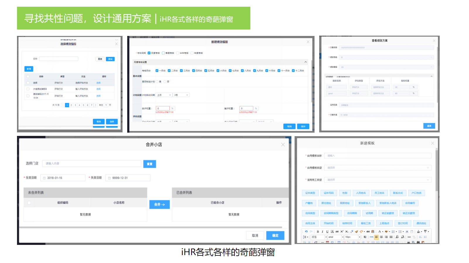 这是一个在开发后才找到我们设计师“补坑”的项目,我们遇到了各式各样的复杂而难用的弹窗,如果在优化时只独立关注每个弹窗,会发现及时再怎么梳理,弹窗里的内容和操作选项还是多得让人抓狂,那这时,我们所要思考的不是如何优化弹窗,而是把所有问题非常大的弹窗整理起来,给出通用的解决方案。