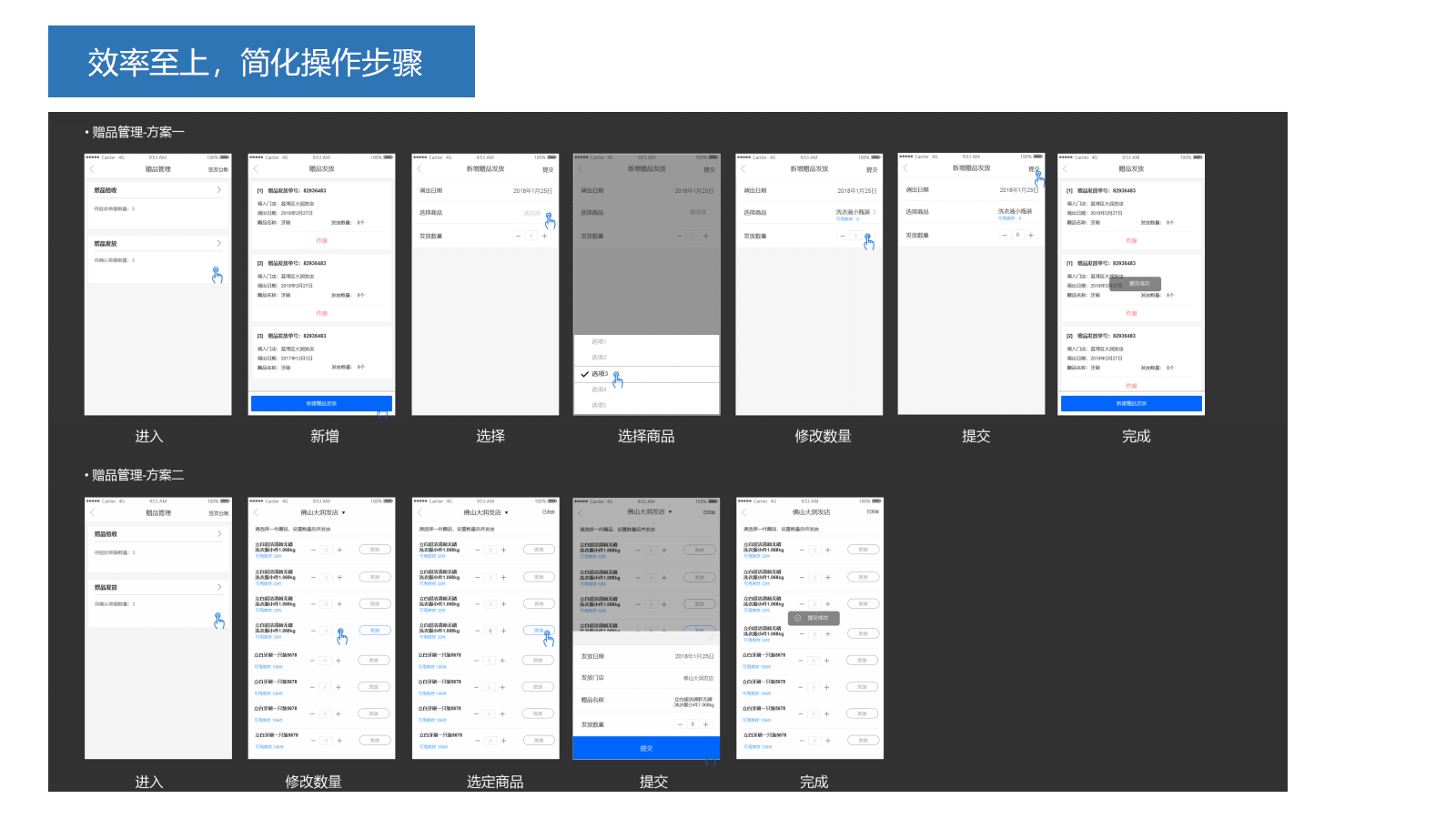 例如,方案一虽然满足了全部需求,但用户需要点击七次才可完成一次赠品的发放。而方案二只需要五步,我们在设计方案时要做到不求最好,只求更好,完成初稿后一定要思考有没有更好的,更便捷的解决方案。